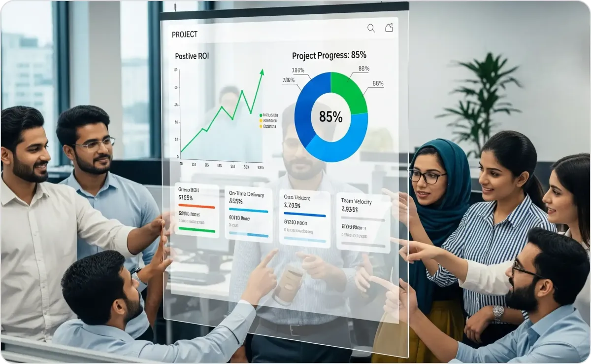 Our development process is transparent, scalable, and always focused on ROI. We don’t just write code — we build solutions that grow your business. With 24/7 access to shared project dashboards, you stay informed at every stage, giving you full visibility and confidence in the results we deliver.